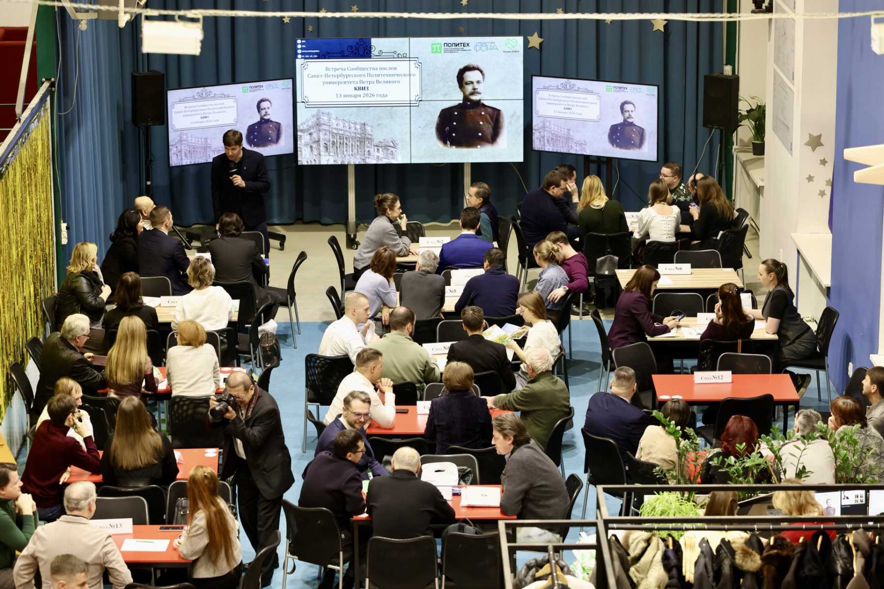 Затем для гостей провели традиционный квиз. Они разделились на 15 команд. Ответить нужно было на 20 вопросов, касающихся истории Политеха и биографии первого директора университета князя Андрея Григорьевича Гагарина. В этом году встреча послов была посвящена 170-летию со дня его рождения.