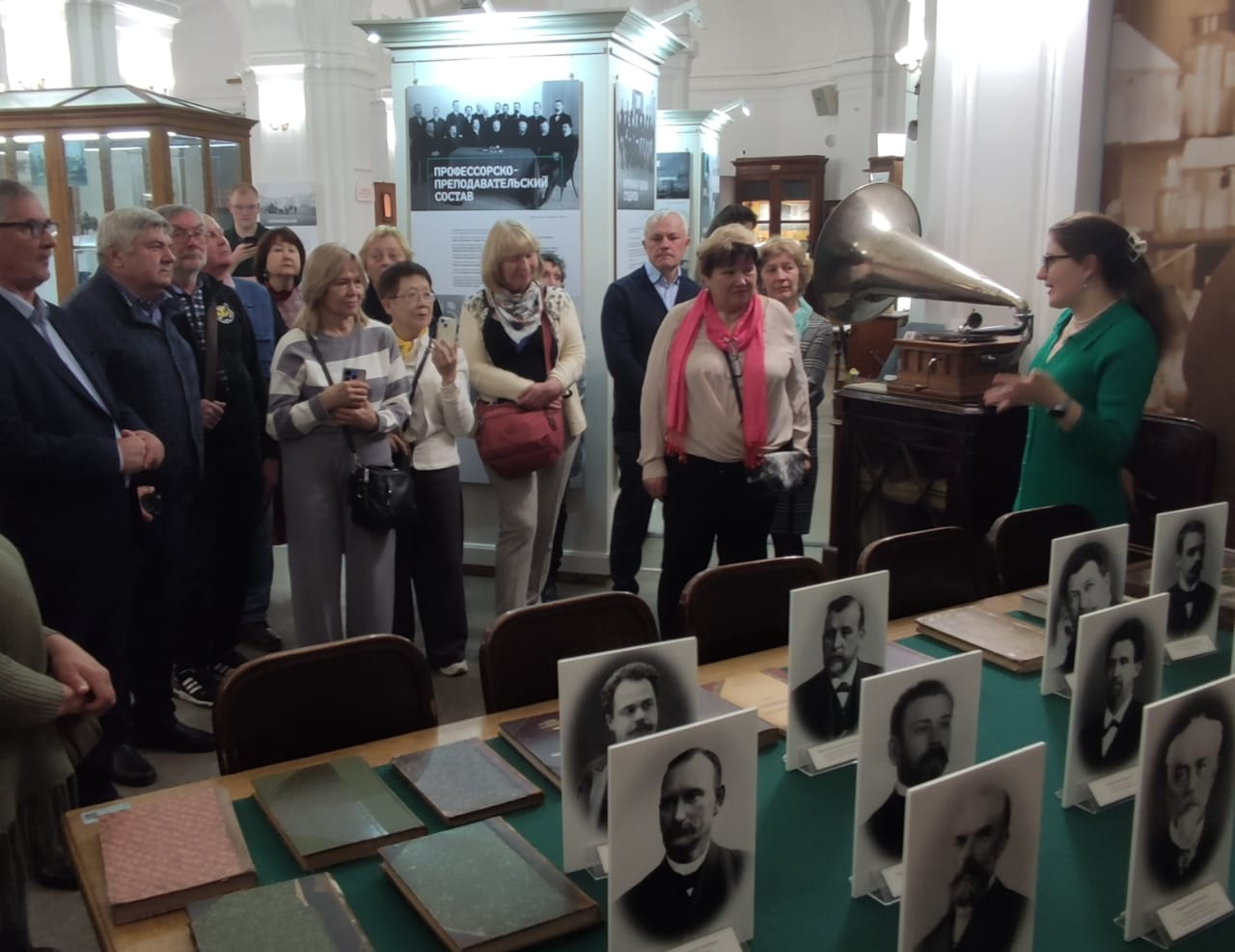 Мероприятие началось с увлекательной экскурсии в музее университета, которая стала настоящим путешествием в прошлое. Выпускники с большим интересом погрузились в историю Политеха, узнавая новые факты и вспоминая былые времена. Все тайны и богатейшее наследие университета для них открыла экскурсовод Мария Завьялова, чей рассказ сделал историю по-настоящему живой и яркой.